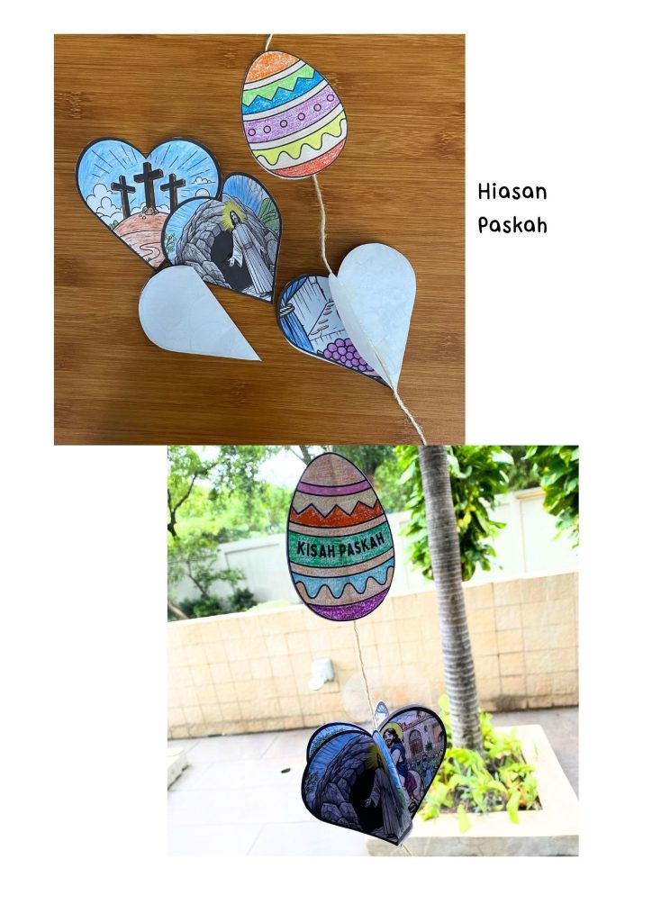Tersedia dua versi juga untuk aktivitas ini. Versi 1 bertema penyaliban Yesus dan versi 2 bertema kebangkitan Yesus.