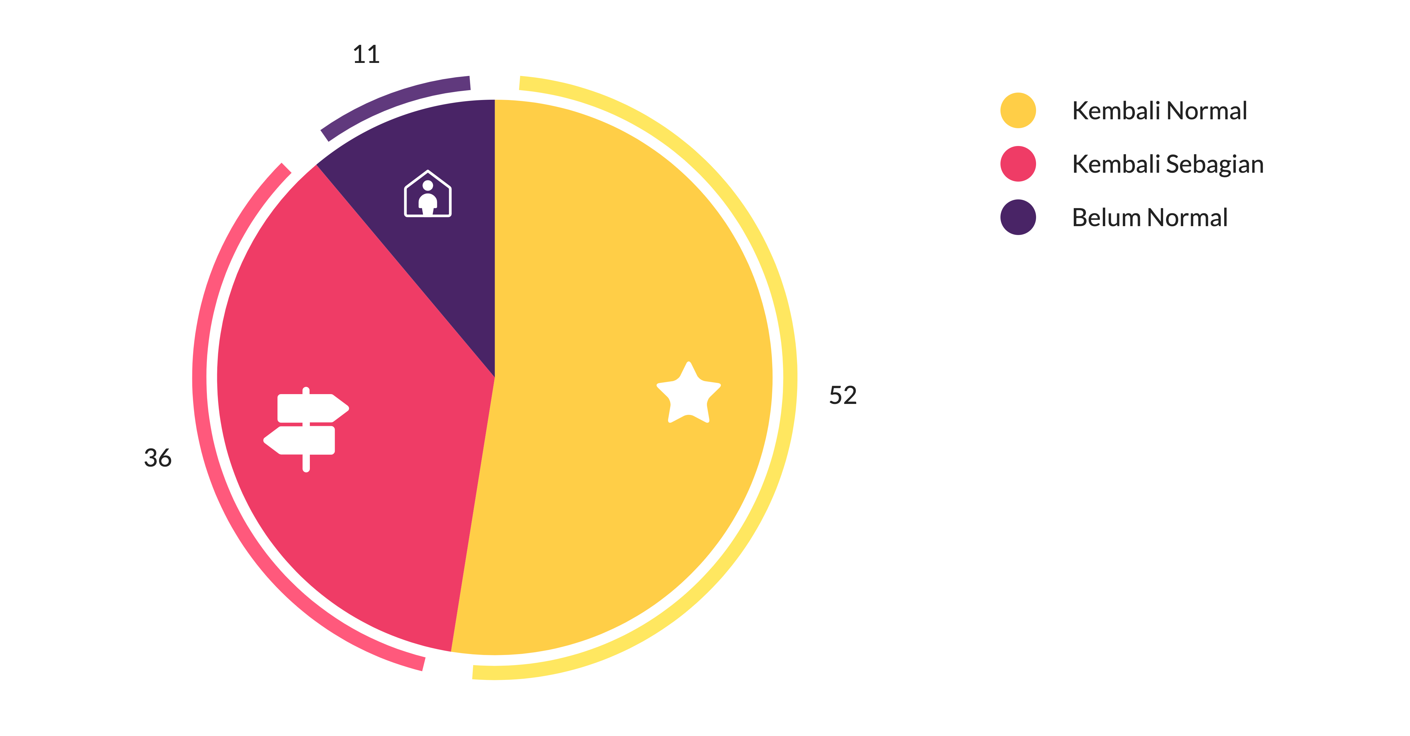 Sebuah gambaran dari negara Amerika yang lebih dulu terkena badai Covid, survey dari sundayschool.works terhadap 1.200 koresponden di Amerika menemukan hanya 52% program Sekolah Minggu gereja yang berhasil kembali normal seperti sebelum pandemi. Selebihnya entah kembali sebagian atau masih online.