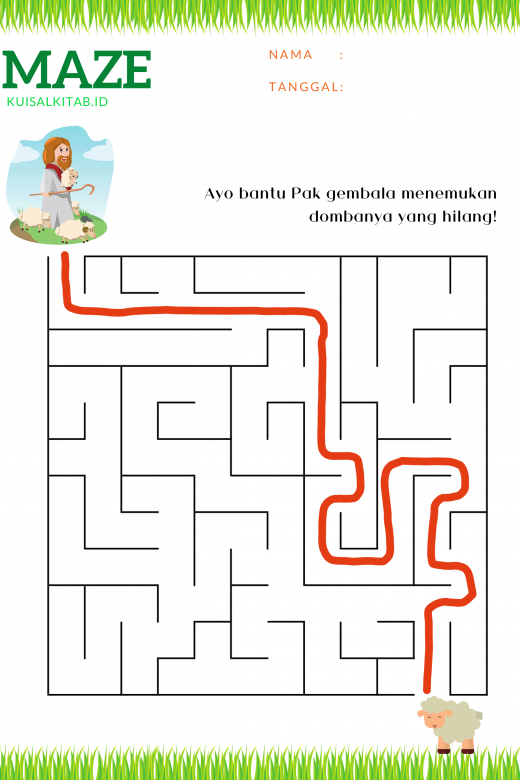 Maze Alkitab Gembala dan Domba yang Hilang sungguh akan menambah keseruan aktivitas belajar Alkitab dengan anak! Mencari jalan …