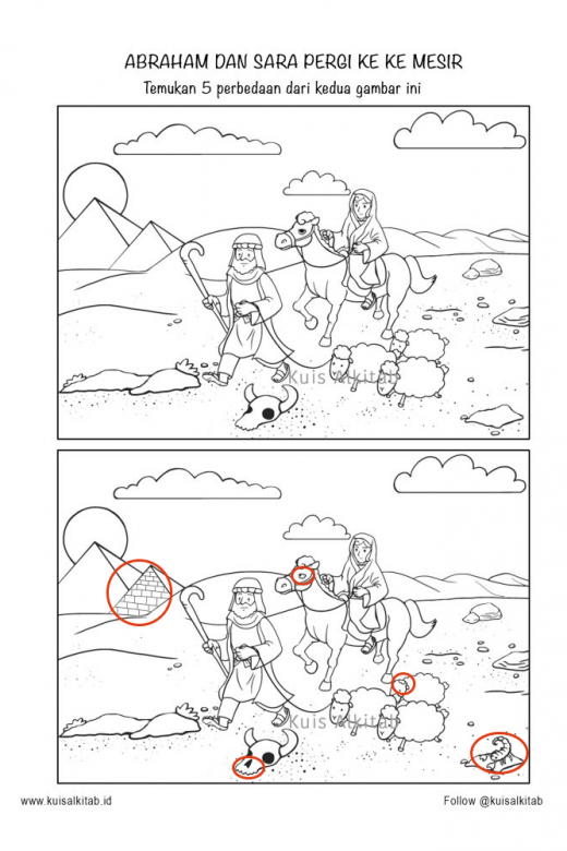 Cari Perbedaan Gambar: Abraham dan Sara ke Mesir adalah aktivitas yang seru dan menantang untuk anak-anak. Berhasil menemukan 5 …