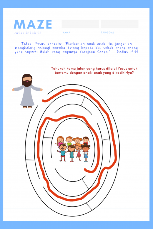 Maze Alkitab Yesus Mengasihi Anak-Anak aktivitas seru yang mengajarkan bahwa Yesus sangat mengasihi anak-anak. Ia rela menderita …