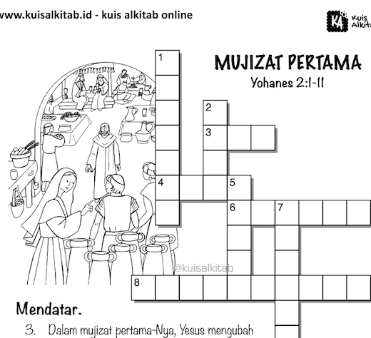 Teka-Teki Silang Alkitab Mujizat Pertama diambil dari kisah mujizat yang dilakukan Yesus di sebuah pesta perkawinan di kota Kana …