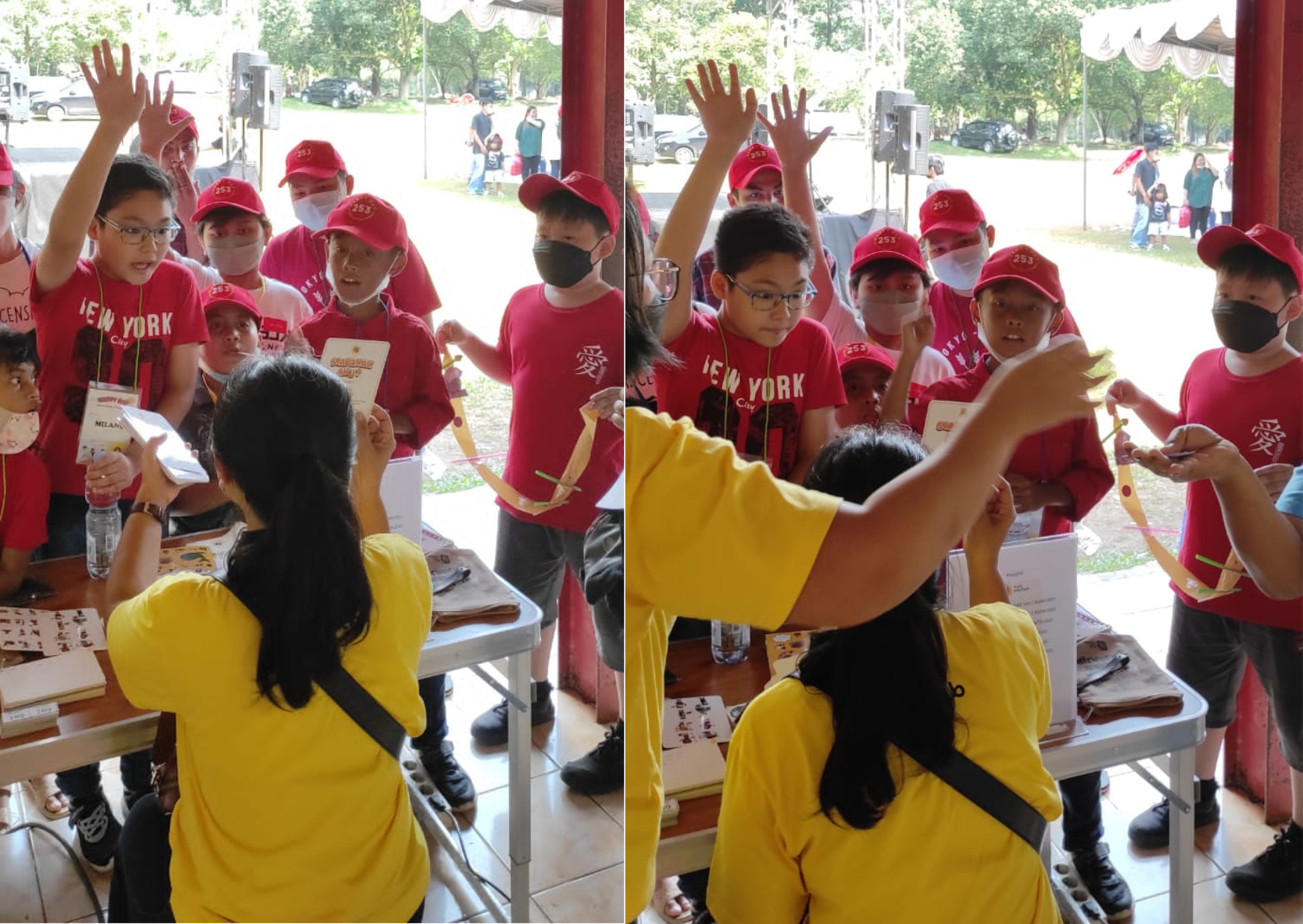 Ada juga anak-anak yang sekedar berdiri di depan layar dan menjawab semua pertanyaan dari video animasi kuis yang diputar melalui channel YouTube Kuis Alkitab.