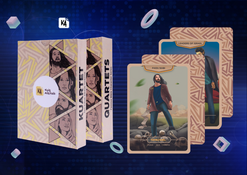 Kuartet Alkitab seri Tokoh Terkenal Alkitab tersedia dalam bahasa Indonesia dan bahasa Inggris. Berisi 40 kartu dengan ilustrasi keren tokoh Alkitab.