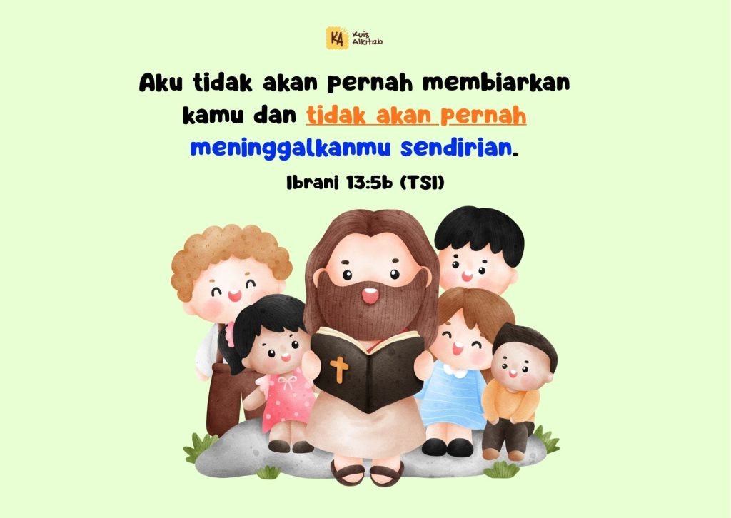 Dengan join KACA atau Kuis Alkitab Creative Arena, kamu akan mendapatkan materi mengajar Alkitab untuk anak-anak secara gratis. Materinya lengkap, dibagi menjadi beberapa kategori usia dan disertai dengan aktivitas yang akan membuat anak lebih dalam mengenal Tuhan.