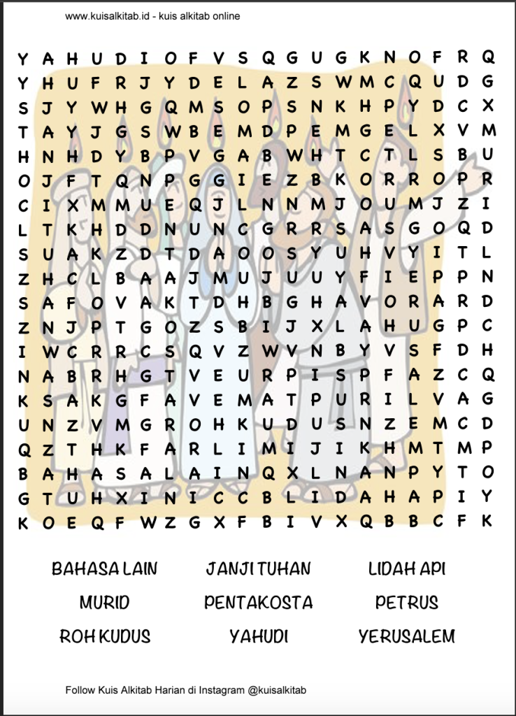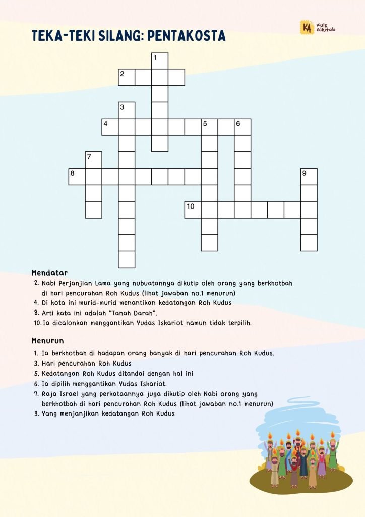 Kurang lengkap kalau aktivitas bertema Pentakosta kali ini tidak ada TTS. Jika diperlukan, kunci jawaban TTS ini bisa dicek di sini.